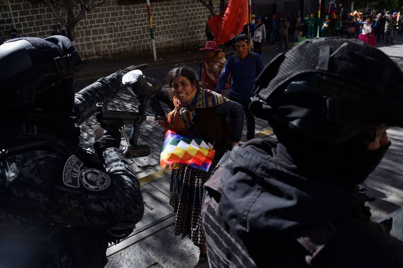 The authorities did not report on any injuries among the protesters, who were seen being pushed onto the ground, shoved into police cars and blasted with tear gas. Morales had promised to attend the march Friday but did not show up.